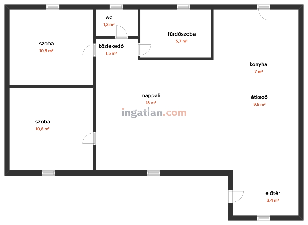 75 m2Alapterület 3 Szoba