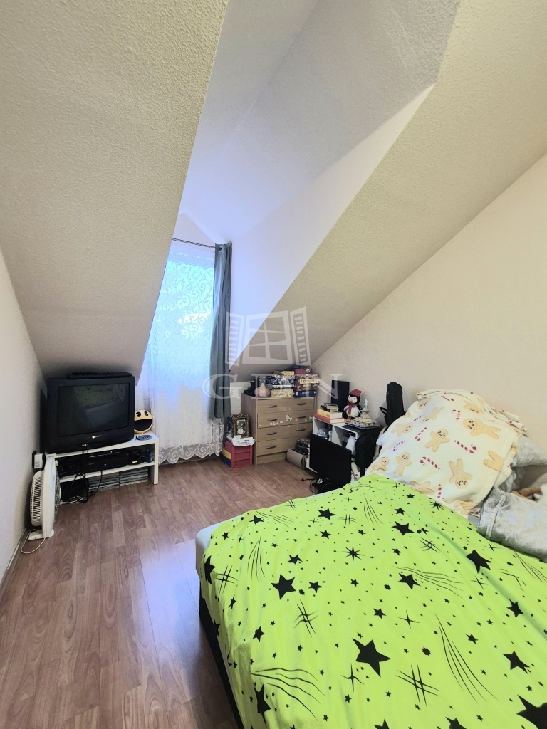 valamint a tetőtérben egy külön bejáratú lakás található.