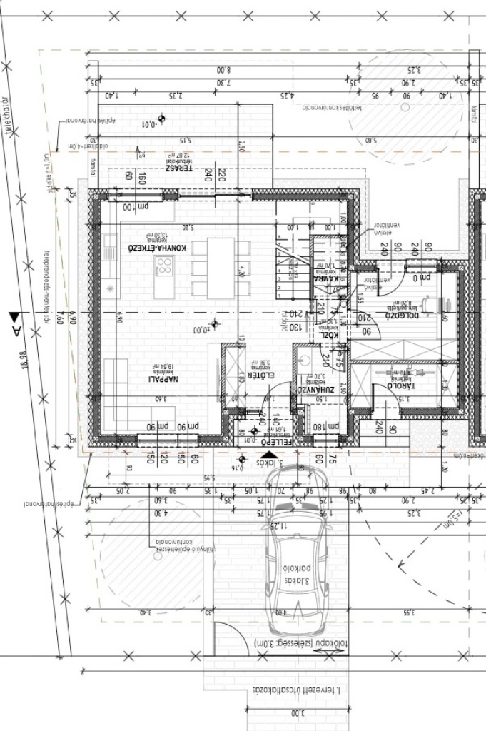 • Fedett gépkocsi beálló: 18 m²